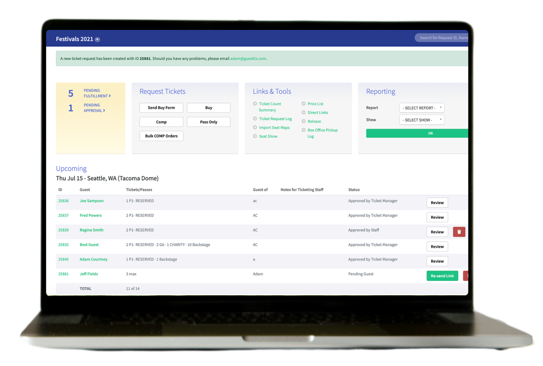 I've worked with GuestTix across multiple tours for many years now. Their combination of software features and personalized service provides me with what I need to streamline our guest list process for me and my touring staff and also gives our guests a great experience. An amazing value add to any touring organization!
